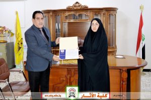 لحصدهم المركز الثاني ..عمادة الآثار تكرم مدير شعبة الأنشطة الطلابية والطالبتين المشاركتين في معرض الفنون التشكيلية الذي اقامته الجامعة .