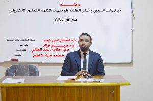 كما وضحت الورشة أنظمة التعليم الإلكتروني (HEPIQ & SIS) والتعليمات والتوجيهات الخاصة بتلك الأنظمة ،بمشاركة من (م.م. اخلاص عبد العالي ريسان – السيد محمد جواد كاظم ) حيث وضحا بأن التعامل مع هذه الأنظمة أصبح ضرورة لا غنى عنها لكل طالب لضمان سير العملية التعليمية بسلاسة،