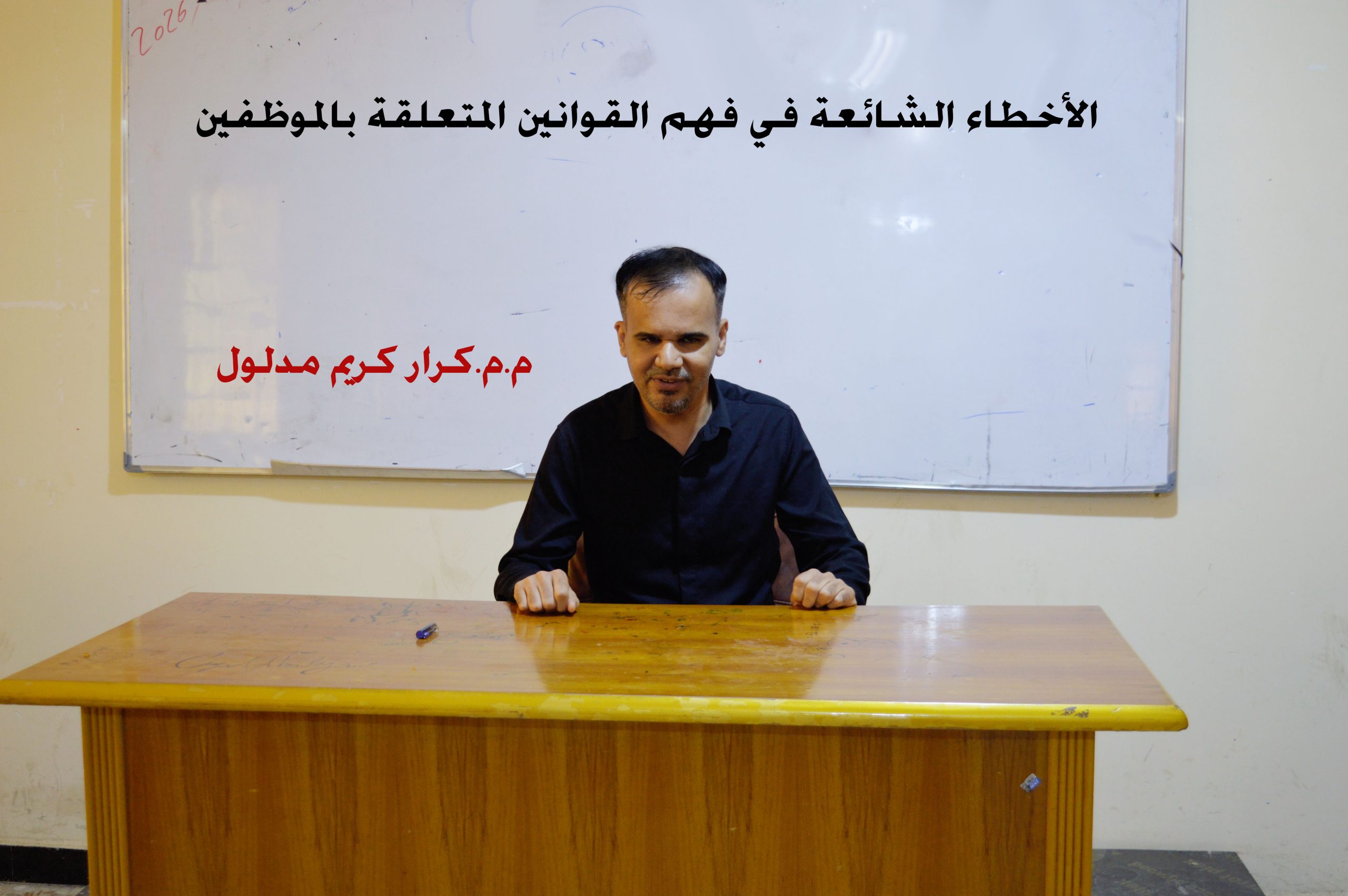 اذ تناولت الندوة العديد من الأخطاء القانونية الشائعة لدى الموظفين في ما يتعلق بالقوانين التي تنظم حياتهم الوظيفية ،وتحدد حقوق وواجباتهم ،كقانون انضباط موظفي الدولة والقطاع العام رقم 14 لسنة 1991 المعدل ،وقانون الخدمة المدنية رقم 24 لسنة 1960 المعدل ،